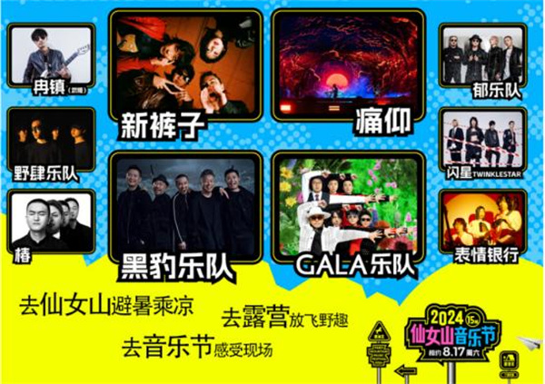 此外,2024仙女山音乐节将于8月17日震撼上演。届时,新裤子、痛仰、冉镇、黑豹、GALA、闪星、椿乐队、郁乐队、表情银行以及野肆等摇滚乐坛的巅峰力量,将带你嗨翻整个夏天。音乐节门票已正式开售!游客可通过“武隆景区”微信公众号、“武隆景区官方平台”微信小程序、携程、美团、高德地图等平台进行购买。