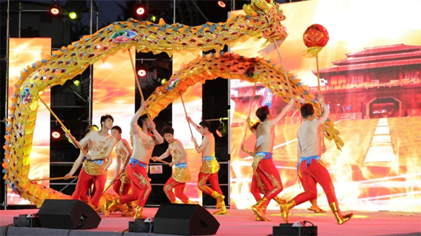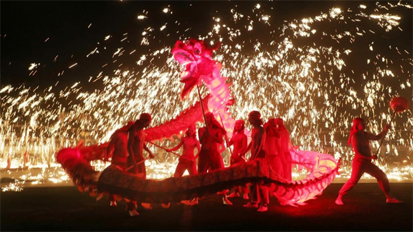 在70分钟的演出中,长龙翻滚腾跃,时而如飞龙在天,时而如蛟龙入海……现场的火龙表演更是将演出推向高潮,夜幕下,一串串耀眼的温度高达1600度的铁花在夜空绽放,铁水砸落在地面,溅起遍地银花。一条长龙在一个个赤膊舞龙人的手中翻腾着,构成了一幅“人在火中舞,龙在火中飞”的壮美景致。在现场,欢呼声、喝彩声此起彼伏,大家不时拿出相机、手机,记录下这难忘的瞬间。