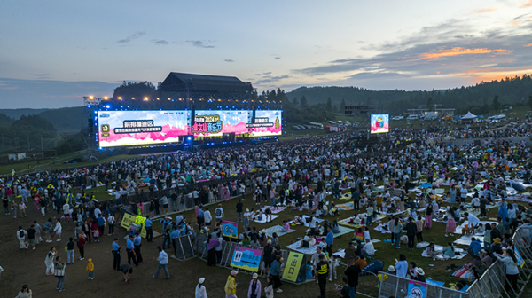 紧接着,野肆、冉镇、表情银行、椿、郁乐队、闪星等知名乐队相继出场,炸翻全场。本土歌手冉镇一首《一起去武隆》带领歌迷们领略武隆的绝美风光;“可是我爱你就像爱山谷里的风”,表情银行带来歌词非常契合仙女山的《安全降落》;唢呐一响,燃爆全场,椿乐队《野草》《晚风》,嗨翻了。让人心动不已的现场唱跳,动感十足的摇滚韵律,乐队艺人们用音乐沸腾草原,吸引了现场歌迷们放肆摇摆狂欢,震撼的音符在仙女山上空盘旋回荡久久不散。