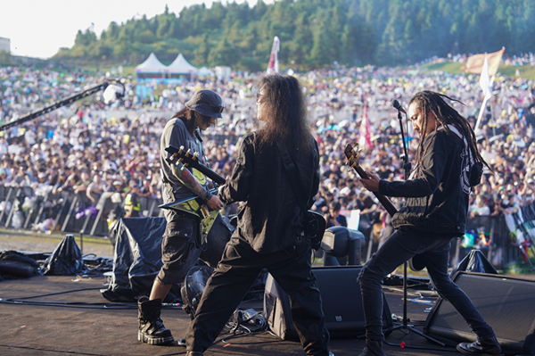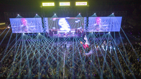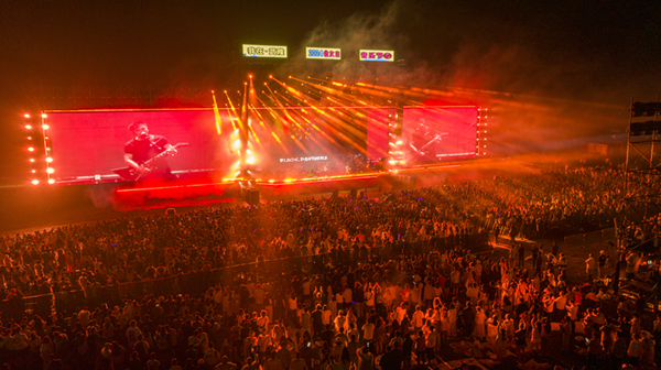 晚上9点10分,已经出道了37年的黑豹乐队,一出场就将音乐节氛围推向另一个高潮,新歌《The Shining》《无地自容》等歌曲,深情的歌声、低沉的嗓音、激昂的演奏,充满了激情。人潮人海中,是你是我,欢呼狂欢,无法自拔,每一首歌曲都让歌迷们感受到了摇滚音乐的魅力和力量,他们的表演仿佛在告诉大家,摇滚精神永不熄灭。