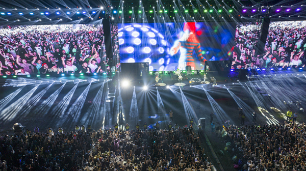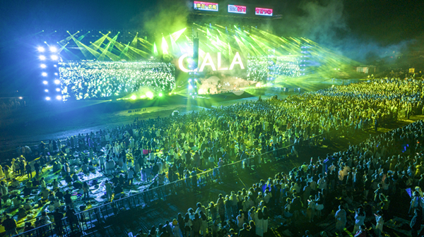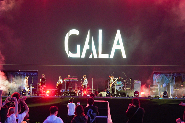 晚上8点10分,GALA乐队闪亮登场,全场立即沸腾起来。动感的旋律,饱含感情的声音,故事感满满的歌词,GALA乐队带来了《水手公园》《Young For You》等多首曲目,每一首歌曲都令现场歌迷听得如痴如醉,正能量满满。