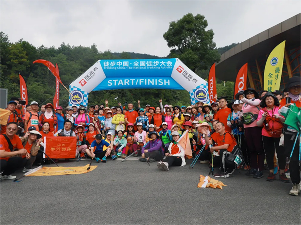 2023徒步中国全国徒步大会(重庆•武隆站)圆满结束,户外运动爱好者合影留念。陈娜霖/摄