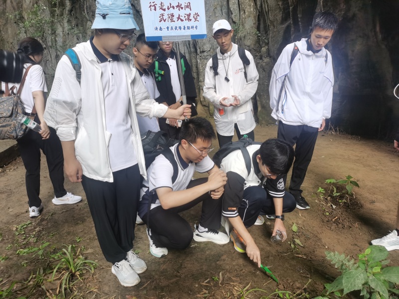 除了文化体验,研学活动还注重生态教育。在仙女山森林科普教育基地和天生三桥地质科普教育基地,同学们通过沉浸式的课堂体验,深入理解了生态系统中各生物之间的相互依存关系,增强了环境保护意识。他们现场进行土质检测,带回了土壤、水、岩石样本,通过现场采样实验和绘制生物链思维导图,学会了小组讨论、协作共赢,懂得了自行发现问题、解决问题,分享展示实验结果。