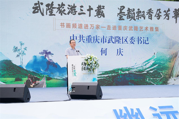 何庆在致辞中向参加活动的书画艺术家及嘉宾表示热烈欢迎。他说,当前,武隆正深入贯彻落实党的二十届三中全会精神和习近平总书记视察重庆重要讲话重要指示精神,锚定加快建成“世界知名澳网官方网站目的地、绿色发展创新示范区”目标,纵深推进以国际化为引领的武隆澳网官方网站“三次创业”,持续深耕研学、运动、艺术、康养、婚恋、服务六大产业链,加快创建全国首批世界级澳网官方网站景区、世界级澳网官方网站度假区。今年是武隆澳网官方网站30年,“书画频道进万家走进武隆活动”是武隆深耕艺术产业链的生动举措,是文旅深度融合的现实写照。今天,我们在这里用光影记录历史、以丹青书写盛世,目的就是投身时代,用思想精深、艺术精湛、制作精良的文艺精品力作赋予中国式现代化武隆新担当武隆新作为,也希望全区文艺工作者不负重托,坚定围绕“举旗帜、聚民心、 育新人、兴文化、展形象”使命任务,用实际行动积极投入文化事业发展,努力增强武隆文化“软实力”,把文化发展成果惠及更广大的人民群众,为新中国成立75周年献礼。