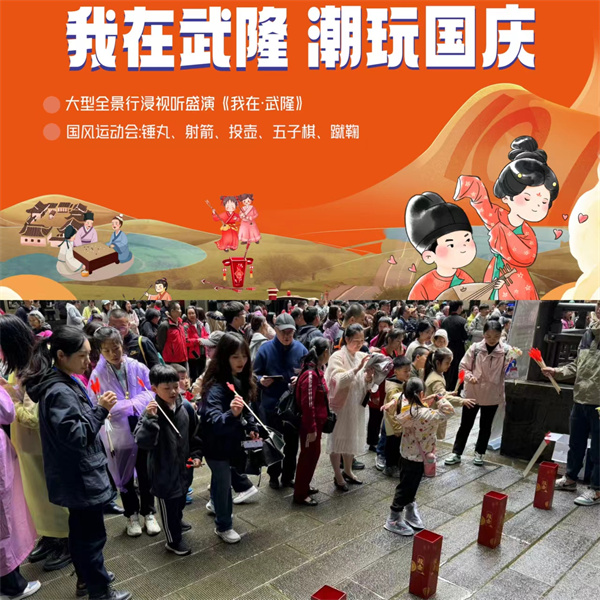 “我在武隆穿越了”,仿佛是一扇时光之门,引领游客踏入历史的长河。国庆期间,锤丸、射箭、投壶、五子棋、蹴鞠等中华传统运动将在天生三桥景区轮番上演,让游客沉浸在古代的文化氛围中,忘却尘世的喧嚣。