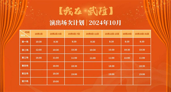 国庆假期马上就要到啦!武隆景区联合华谊影院为大家准备的艺术盛宴《我在武隆》将在祖国妈妈生日10月1日当天隆重上演啦!激动的心,颤抖的手!终于等来这场盛大的演出。10月1日-10月7日,每天都有精彩演出哦!为了提升小伙伴们的观演体验,小编整理了一份“保姆”级攻略,一起来看看吧。