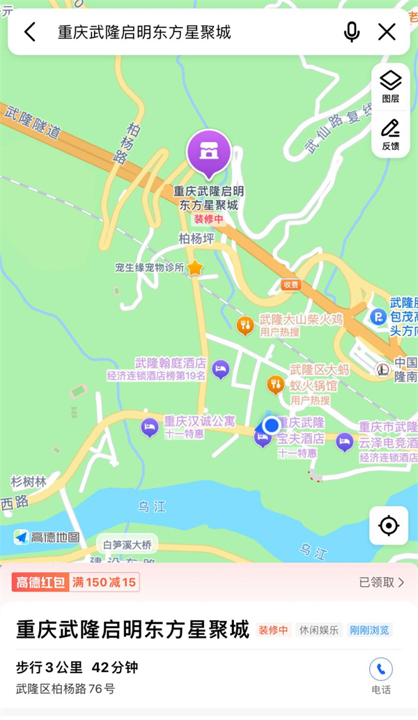 长途汽车:重庆四公里汽车枢纽站—武隆汽车站—武隆喀斯特文化休闲中心。