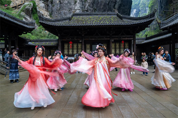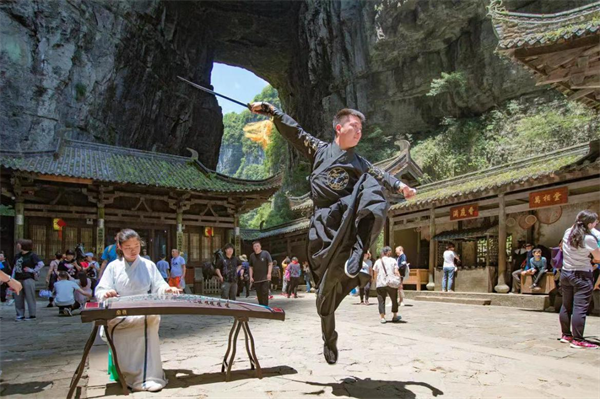 你敢来武隆玩穿越吗?国庆期间,武隆景区带你打开时光之门,穿越时空,回到唐朝,在古代驿站风情的天生三桥景区,参加投壶、射箭、五子棋、蹴鞠等传统运动,沉浸在古代的文化氛围中,忘却尘世的喧嚣。