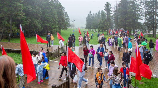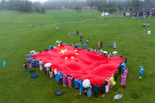 盛世庆典,山河添彩。为庆祝中华人民共和国成立75周年,一面气势恢宏的巨幅国旗在武隆天生三桥与仙女山景区缓缓铺展,犹如一幅壮丽的山河画卷,将这片土地对祖国的无限热爱与祝福,展现得淋漓尽致。同时,武隆景区精心策划的一系列精彩纷呈的“我在武隆潮玩国庆”互动体验活动,更是吸引了众多游客纷至沓来。