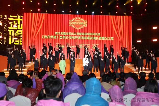 10月1日晚,作为重庆武隆启明东方星聚城的核心亮点之一,《我在·武隆》全景行浸视听盛演首演礼启幕仪式在城区喀斯特文化休闲中心举行,为武隆文旅产业高质量发展注入了新的活力。