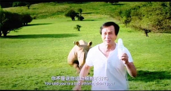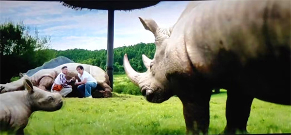 好不容易摆脱犯罪分子的追踪,熊猫宝宝饿了,成龙大哥悄咪咪地靠近正在草原上喂奶的犀牛,抱开小犀牛,用奶瓶挤奶,但一会儿犀牛爸爸就来了,成龙大哥与犀牛在仙女山大草原“赛跑”最终逃跑成功。影片中,硬汉形象的成龙大哥与不太聪明的偷盗者斗智斗勇,笑料百出,一遇到“大萌主”呼呼秒变萌萌哒,令人忍俊不禁。