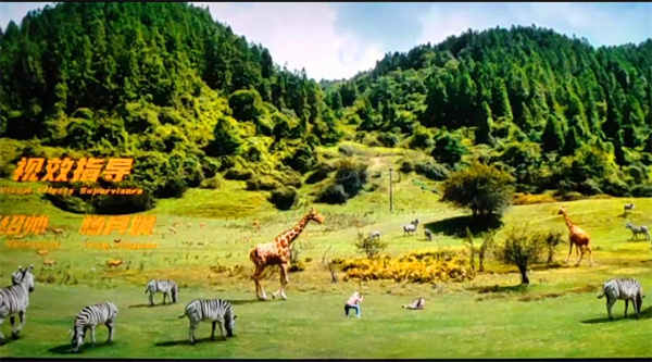 在影片中,观众们可以看到长颈鹿、斑马、大象、老虎等动物在仙女山青青草原悠闲生活,成龙带领的夺“宝”联盟带着熊猫呼呼来到仙女山,犯罪组织紧随其后,在最美公路,惊险刺激的赛车夺“宝”大战就此上演,起伏的公路,风景绝佳的草原,配上憨态可掬的熊猫宝宝呼呼,一幅绝美的景象就此诞生。