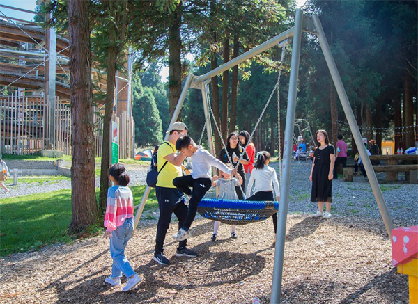 国庆热门的亲子目的地是哪里?仙女山树顶漫步成为亲子家庭追寻欢乐、放松解乏的热门去处。森林之眼、云端旋降、鹰巢秋千、攀爬网、森林溜索、团队绳、转椅、爱传递、魔法转盘等,景区内到处可以看见孩子们脸上洋溢着灿烂的笑容,嬉笑打闹声在乐园中此起彼伏,在此遛娃,大人“放松随性”,小孩“放肆撒野”。