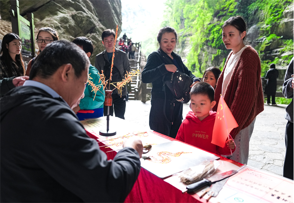 天生三桥和龙水峡地缝景区开展了“我在武隆穿越了”主题国风活动,蹴鞠、投壶、射箭、锤丸、糖画等非遗活动,吸引众多游客参与,游客们在青山绿水中享受假期带来的休闲惬意欢乐时光。