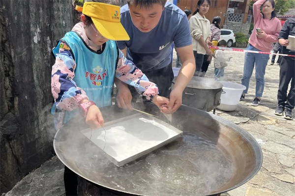苗寨特色的民俗活动,吸引众多游客参与。“手工苕粉”“打糍粑”体验活动将传统美食制作的魅力展现得淋漓尽致,大家齐心协力,享受劳动的快乐,“自己动手做的苕粉、糍粑格外香甜”,游客表示。