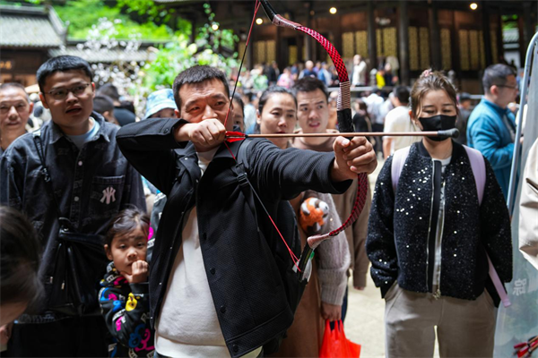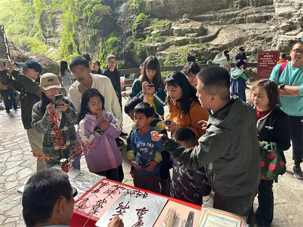 节日期间,武隆各大景区景点节日氛围浓厚,热闹非凡。精心策划了一系列精彩纷呈的“我在武隆潮玩国庆”互动体验活动和“我在武隆表白祖国”主题活动。锤丸、射箭、投壶、蹴鞠、非遗糖画等传统项目在仙女山、天生三桥、龙水峡地缝景区轮番上演,让游客在体验传统文化的同时,也感受到了浓厚的节日氛围。