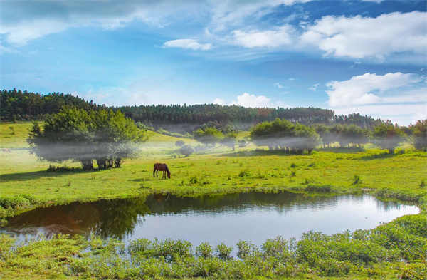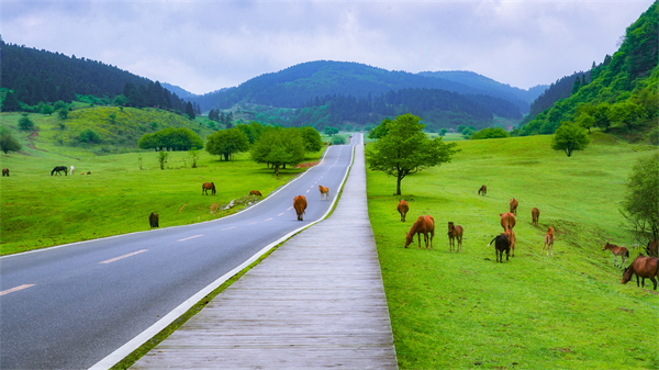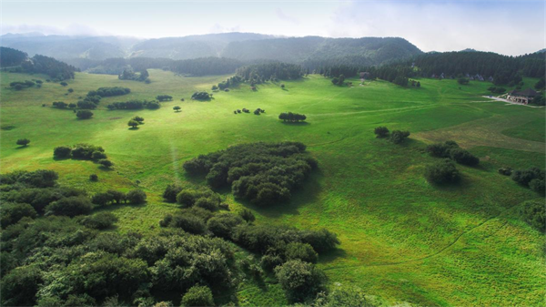 在《熊猫计划》的镜头下,仙女山大草原被赋予了新的生命。主角们目睹了熊猫、长颈鹿、斑马、大象以及一些野生动物在“诺亚动物园”自由自在地生活,它们或悠闲漫步、或欢快嬉戏,共同构成一幅和谐景象。这一场景的完美呈现,主要得益于仙女山得天独厚的自然条件。10万亩的青青草原与30万亩绿波浩渺的林海交相辉映,为电影提供了广阔的拍摄空间。观众可以从电影镜头中随心所欲地感受茫茫林海的浩瀚壮阔,领略绿草如茵的旖旎风光,体会牛羊成群、骏马飞腾的自由奔放,这些自然元素造就了电影中和谐共处、生机勃勃的场面。