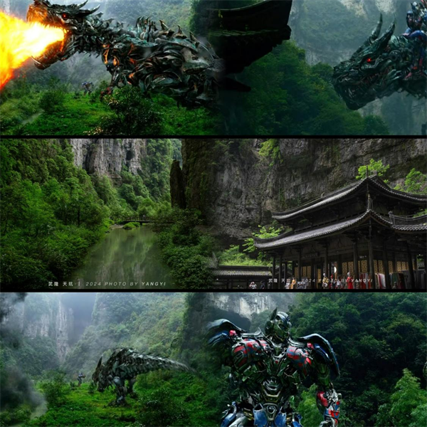 可能很多朋友还未亲自去过天生三桥,但相信都早已看过这个景区了,在两部很有名的电影里。一部是2006年张艺谋的《满城尽带黄金甲》、另一部则是2014年迈克尔.贝的《变形金刚4》。它们都曾在此取景,除此之外,还有刘亦菲的《三生三世十里桃花》、吴樾的《王牌替身》、张丹峰的《勇者无惧》等国内外知名影视作品陆续在此取景。《我们十七岁》、《极限挑战》等热门综艺节目,都能在其中看到天生三桥绝美的风景。今年6月24日,武隆天生三桥影视基地更是成功入选为“重庆市影视基地”,成为全球导演和影视创作者梦寐以求的拍摄胜地。