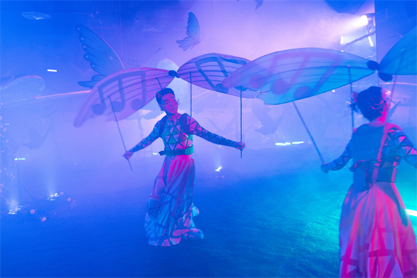 《我在武隆》融合自然美景与人文艺术,由“我在·天之上”“我在·山这端”“我在·地中央”“我在·林间行”“我在·水这方”“我在·武隆”共同组成,将武隆的人文精华和自然禀赋呈现在广大观众面前,是一场“我与武隆同频,武隆与我同在”的全景“行浸”视听盛演。