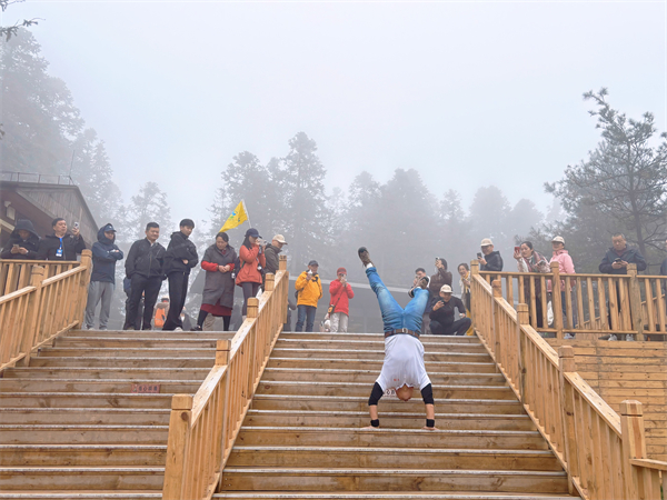 “加油!”“厉害!”“好身手!”“给你点赞!”“抖音就叫山哥登山吗?回去关注你!”他们的表现赢得了过往游客的连连赞叹,游客们的鼓励与支持,如同一股股暖流,激励着他们不断前行。他们也在这里收获了最忠实的粉丝。