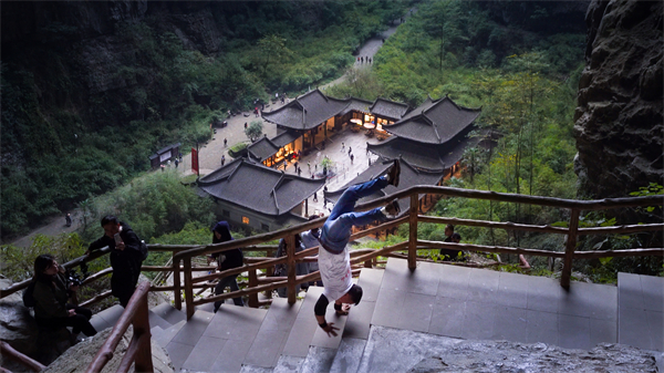 据悉,重庆武隆已经是他们倒立登山的第27站了。此前,他们已成功倒立征服老君山、云门山、五台山、武当山、三峡之巅等26座闻名遐迩的山岳景区,每一次的成功登顶,都凝聚着他们背后无数次的坚持和不懈追求。