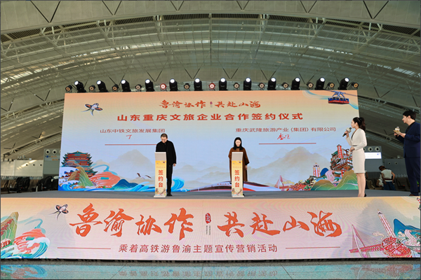 山海传友谊,鲁渝续深情。11月19日至20日,重庆市委副书记、市长胡衡华率重庆市代表团来山东考察。期间,2024乘着高铁游鲁渝启动仪式在济南东站举行,再一次为鲁渝两地呈上一场精彩纷呈的文旅合作盛宴。来自山东和重庆两省市的文化和澳网官方网站部门相关领导、文旅企业代表、重点澳网官方网站景区度假区代表、旅行社代表、酒店民宿代表、媒体等近100人参加活动。