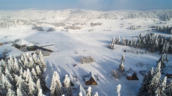 滑雪场是仙女山下雪后的一大亮点。当雪花纷纷扬扬飘落,整个滑雪场就会成为冰雪爱好者的欢乐海洋。作为西南地区最大高山滑雪胜地,仙女山室外滑雪场面积达5万平米,可同时容纳3000人滑雪,根据游客的滑雪水平及爱好,还专门设置了初级滑雪道、中级滑雪道、高级滑雪道,滑雪橇、雪上飞碟和滑雪船等各种滑雪器具各具特色,无论是经验丰富的滑雪高手,还是初次尝试的新手,都能在这里找到属于自己的乐趣。想象一下,那光滑的雪道,在阳光下闪烁着银光,人们从雪道上飞驰而下,带起阵阵雪雾,欢呼声、笑声在寒冷的空气中回荡,简直爽翻天。