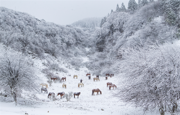 仙女山,这个名字本身就带着几分仙气缭绕的地方,如今已被皑皑白雪精心雕琢成一个冰雪童话世界,换上了洁白的冬装,无疑是各位小“仙女”打卡拍照的绝佳之地。33万亩林海、10万亩草原被冰雪所笼罩,白雪皑皑、银树冰花,雾凇、冰瀑等呈现出罕见的林海雪原壮观景色。每一处景色都仿佛是大自然精心布置的摄影棚,等待着你来捕捉其中的瞬间。