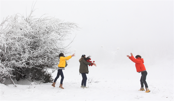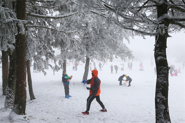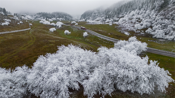 沿着仙女山蜿蜒曲折的最美公路缓缓前行,道路两旁,树木覆盖着皑皑白雪,与苍翠的草地交织在一起,恰似“千树万树梨花开”的绝美场景。行人的身影在道路的起伏中若隐若现,宛如一幅流动的冰雪画卷,传说中的仙境也仿佛被带进了现实。在这里,你可以捕捉到许多令人惊艳的照片,让你的朋友圈充满仙气与梦幻。