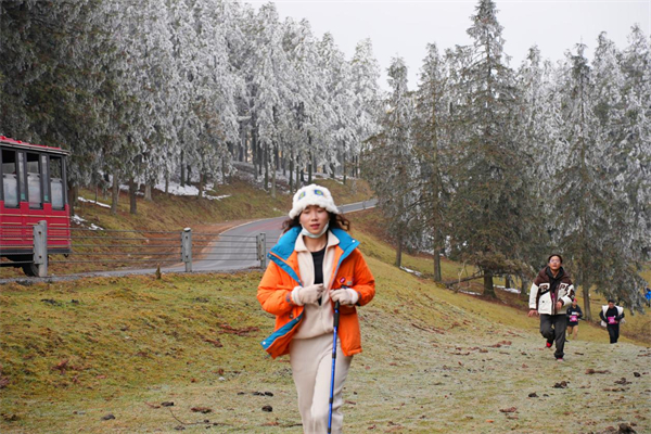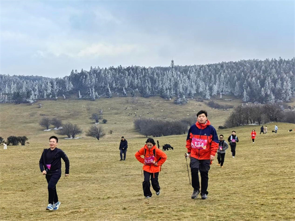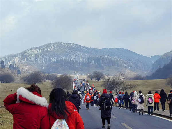 不同于城市中的喧嚣与匆忙,仙女山雪地徒步是一场真正的“回归自然”之旅。参赛者们穿梭于原始森林、草原与雪原之间,沿途的风景仿佛一幅幅流动的画卷展现在眼前,晶莹剔透的冰凌挂在枝头,远处山峦叠嶂,云雾缭绕,每一次呼吸都仿佛能净化心灵。这不仅是一场体力的较量,更是一次心灵的洗礼,让人在挑战中学会放慢脚步,感受大自然的美好。