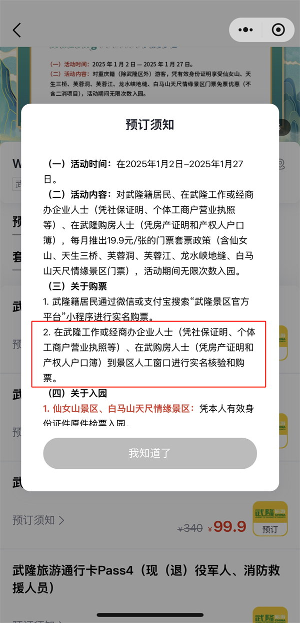 注意啦!这几类需到景区人工窗口进行实名制核验和购票:在武工作或经商办企业人士,需准备社保证明、个体工商户营业执照等;在武购房者需准备房产证明和产权人户口簿。