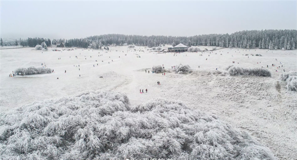 此刻正值冬日,平均海拔1900米的仙女山已被冰雪所笼罩,白雪皑皑、银树冰花等呈现出林海雪原的壮美景色。同时,仙女山还是国家5A级景区、国家森林公园,拥有33万亩高山森林和10万亩天然草场,被誉为“南国第一牧原”和“东方瑞士”。