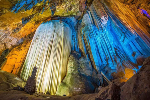 被誉为“地下艺术宫殿”“中国最美洞穴”的芙蓉洞更是美不胜收,也是国家5A级景区、世界自然遗产地、国家地质公园。洞内石笋林立、石幕低垂,形态各异且色彩斑斓。在灯光的照耀下,这些钟乳石更显得奇幻多姿,仿佛将您带入了一个梦幻般的童话世界。