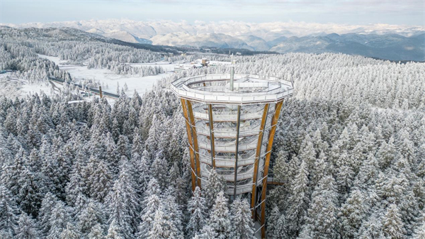 仙女山的网红景点—树顶漫步,以其独特的视角和壮观的景象吸引了无数游客。登上森林之眼,从空中俯瞰林海雪原,感受冰雪盛宴带来的震撼与壮美。