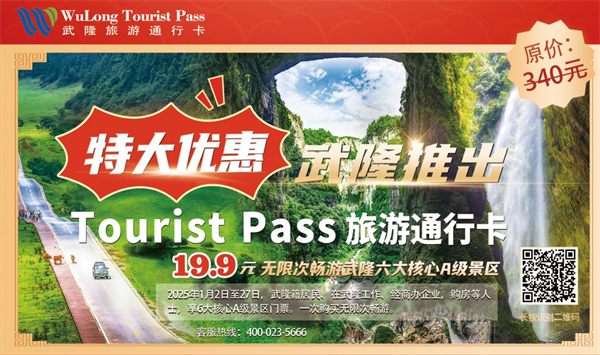 重庆籍市民,只需59.9元(含仙女山、天生三桥、芙蓉洞、芙蓉江、龙水峡地缝、白马山天尺情缘景区门票),就可在1月27日前无限次进入景区。