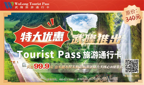 山东籍市民,只需99.9元(含仙女山、天生三桥、芙蓉洞、芙蓉江、龙水峡地缝、白马山天尺情缘景区门票),2025年即可无限次进入景区。