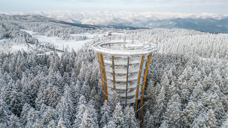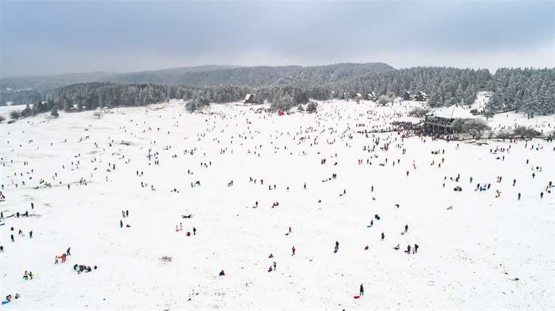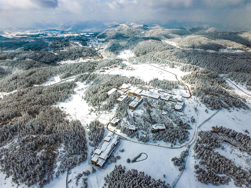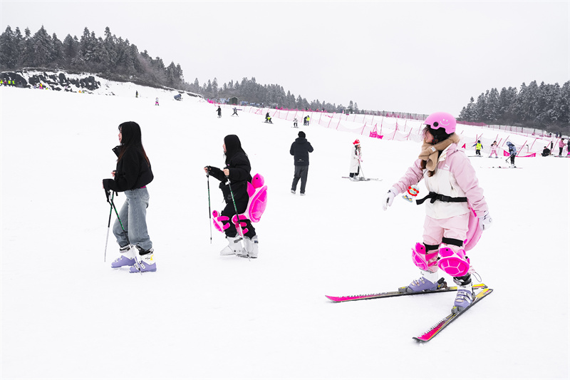 离开《飞阅武隆》,仙女山成为下一个打卡地。仙女山户外滑雪场热闹非凡,一片银装素裹的世界里,滑雪爱好者们在雪道上飞驰而下。记者们看到,这里不仅有专业的滑雪道满足高手们的需求,还有适合初学者的区域,许多初学者在教练的指导下,正小心翼翼地迈出滑雪的第一步,现场充满了欢声笑语,记者们纷纷拿起相机和笔记录着。