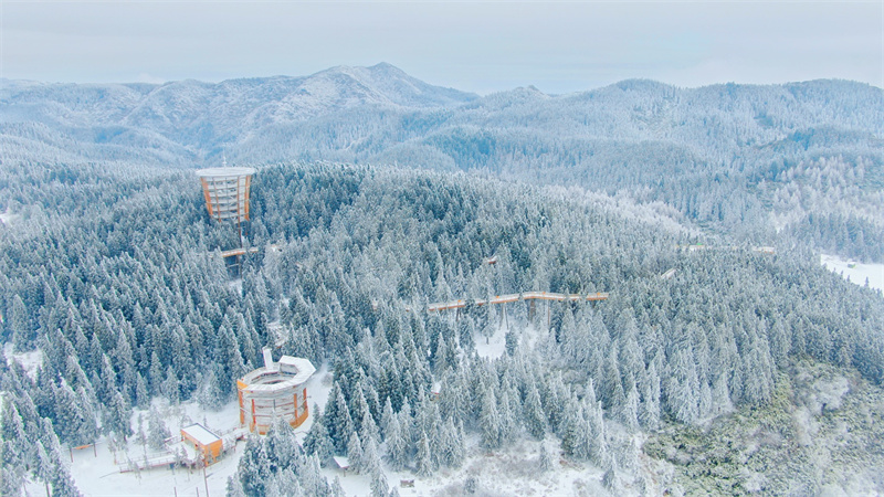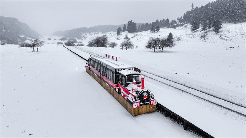 最后,仙女山网红公路也留下了记者们的足迹。蜿蜒的公路在白雪的映衬下像是一条黑色的丝带缠绕在山间。欧式观光小火车行驶在公路上,窗外的景色不断变换,从雪山到森林,从草原到山谷,每一处都让人陶醉。记者们纷纷拿起相机,记录下这美丽的瞬间,并表示,要将此情此景分享给更多的人。