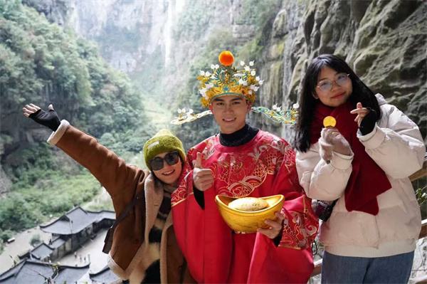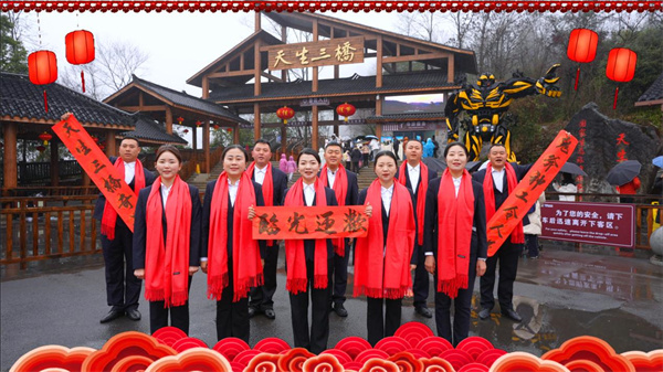 非遗吹打不仅是艺术的展示,更是文化的传承,古老艺术与自然山水间会碰撞出怎样的火花?想象一下,悠扬的唢呐声划破宁静,仿佛能唤醒山间的每一寸土地,古老与现代在这一刻交融;木叶吹奏如清泉般流淌,每一片叶子的轻吟,都是大自然最质朴的乐章;热烈非凡的耍锣鼓点燃热血,让人豁然开朗。这个春节,大家一起到仙女山、天生三桥、芙蓉洞感受中华文明的独特魅力,开启一次心灵之旅,一同聆听这穿越时空的旋律吧。