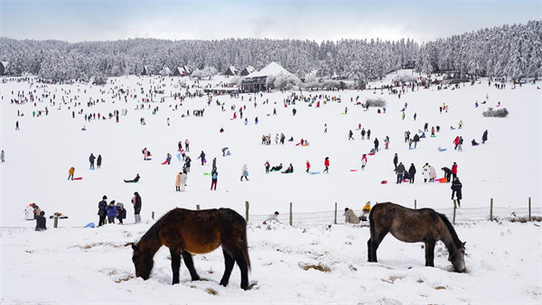“东方瑞士”仙女山,高山草原、林海雪原,独树一帜。根据天气预报显示,春节期间可能会下雪,草原、森林被厚厚的积雪所覆盖,呈现出千里冰封、万里雪飘的唯美冰雪盛宴奇观。景区24小时可入园,春节期间娱乐项目营业时间:8:30-16:30(1月28日、29日,2月4日);8:00-17:00(1月30日—2月3日)。