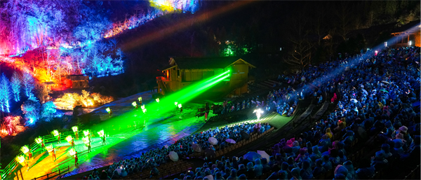 在《印象武隆》的舞台上,观众们仿佛置身于波涛汹涌的川江之畔,感受着船工们与风浪搏斗的英勇与坚韧。每一声号子都承载着历史的厚重,每一幕场景都诉说着巴渝大地的故事。观众们在这里看到了勤劳智慧的巴渝人民如何在山水间劳作、生活,听到了悠扬动听的民歌如何在山谷间回荡,欣赏到了气势磅礴的山水实景演出,感受到了来自心底的震撼与感动。