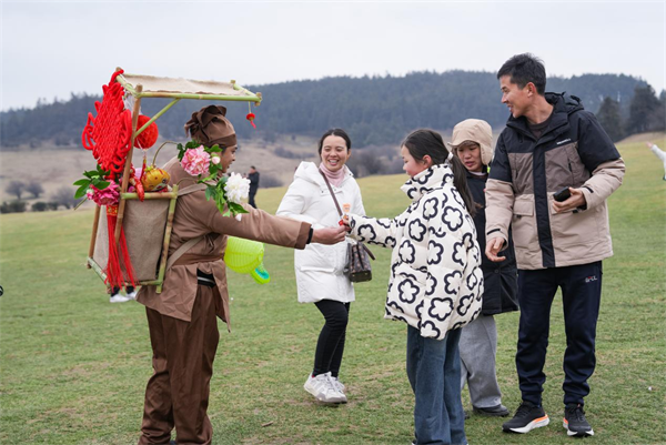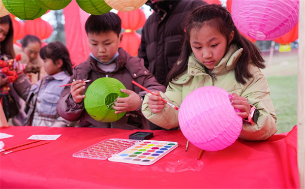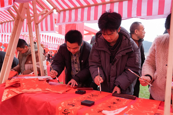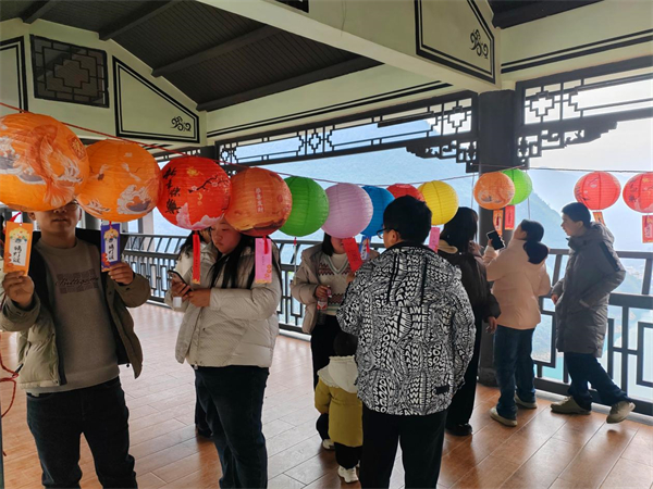 踏入仙女山景区,首先映入眼帘的便是热闹非凡的新春集市。在这里,写春联、印年画、剪窗花、糊灯笼等传统民俗活动一应俱全。