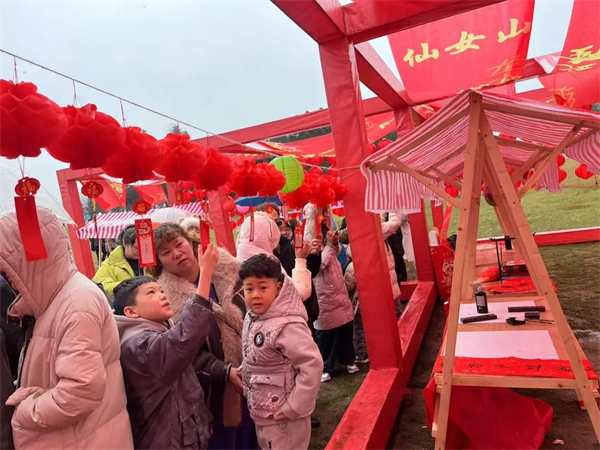 值此新春佳节,仙女大草原年味十足的新春集市如火如荼,写春联、印年画、剪窗花、糊灯笼等传统民俗活动一应俱全。赏雪、玩雪间不妨参与其中,感受一下武隆的特色年味,传递新年祝福。