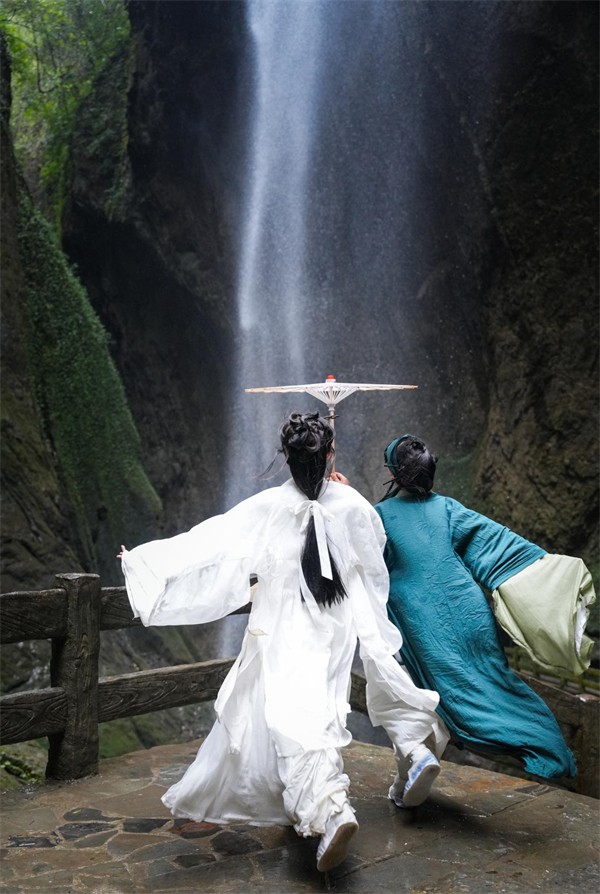 如果说天生三桥是大自然的雄壮赞歌,那么龙水峡地缝就是一首细腻柔和的抒情诗。沿着蜿蜒的栈道深入地缝,两侧是陡峭的崖壁,高达数百米,如刀削斧劈一般,阳光透过裂缝洒下斑驳光影,与清澈的溪流、形态各异的钟乳石共同编织出一幅幅生动的画面。
