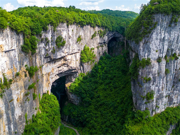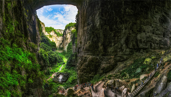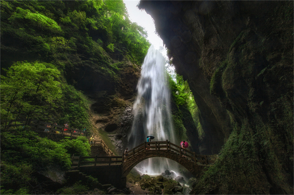 天生三桥,这个被《满城尽带黄金甲》《变形金刚4》等众多影视相中的地方,绝对能震撼你的视觉。三座天然形成的巨大石桥横跨山谷,气势磅礴,谷底幽静深邃,仿佛藏着无数的神秘故事,等你探索。