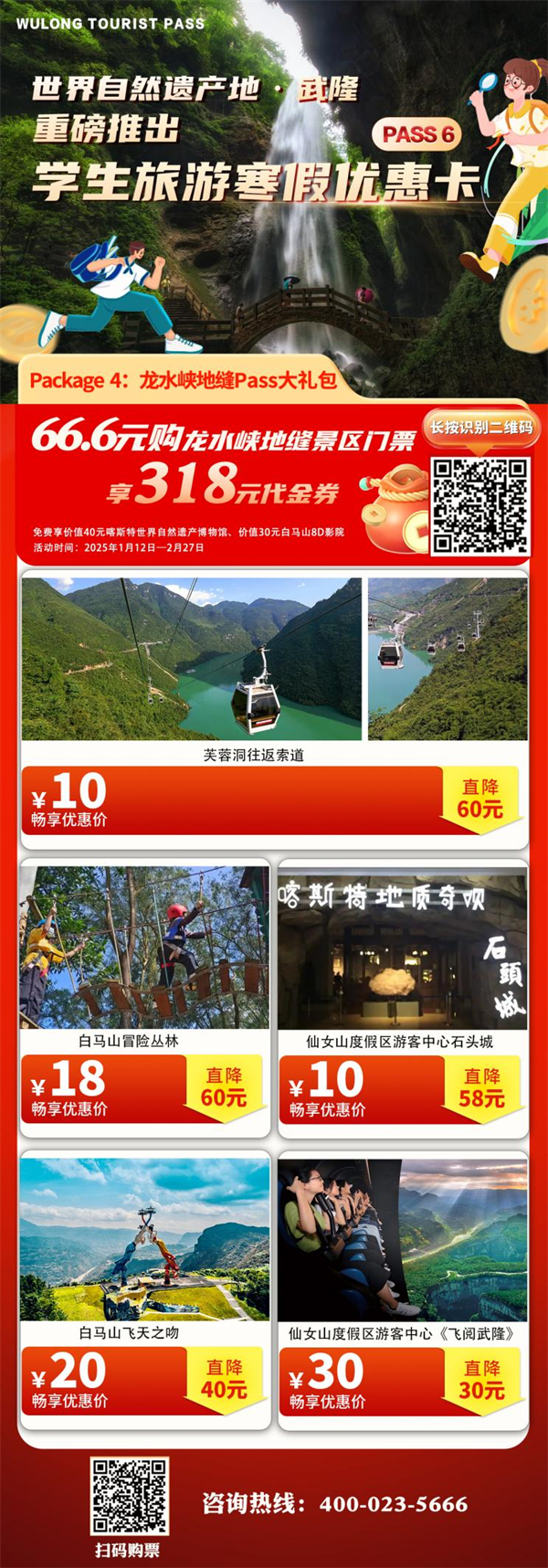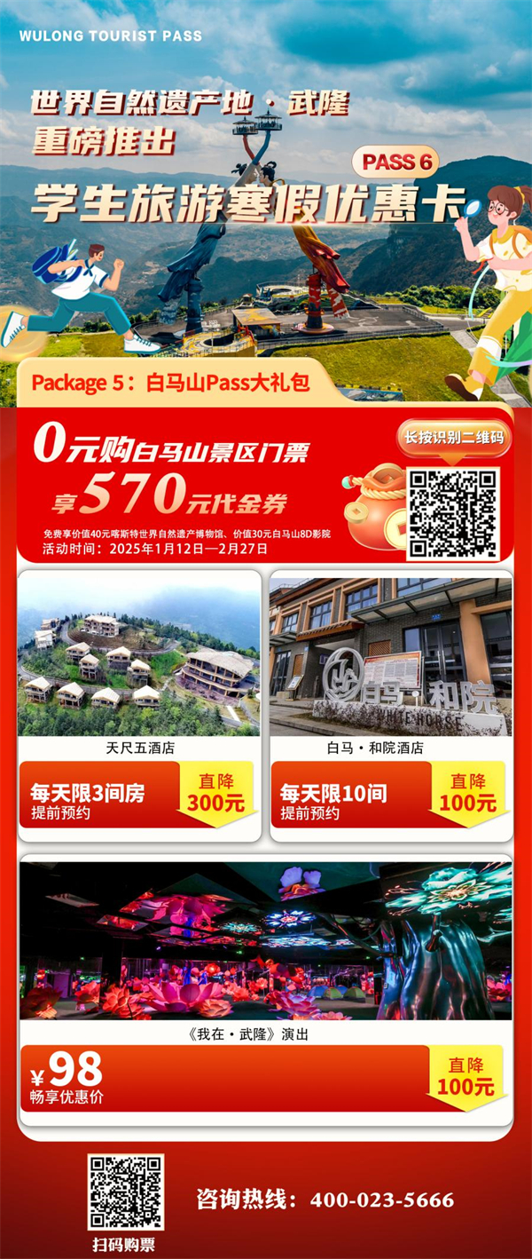 @全国在校学生,别再犹豫啦!趁着寒假尚未结束,抓住这巨大福利,带上你的好奇心和背包,与武隆来一场青春的邂逅。让武隆的山水为你的寒假画上一个完美的句号,留下一段难忘的青春记忆!