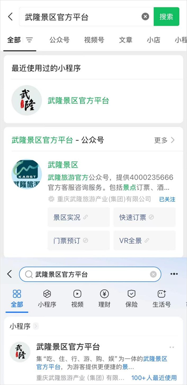 有需求的游客可直接扫描图片二维码购票,或通过微信或支付宝搜索“武隆景区官方平台”小程序购票,也可到武隆景区售票窗口,实名购票。请注意,购票须知、入园方式以景区官方平台、售票窗口解释为准。