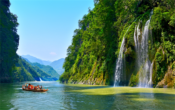 若说仙女山是陆上的春日狂想,芙蓉江则是水写的灵动诗行。乘缆车俯瞰芙蓉江碧玉江水,两岸青翠欲滴,在乌江的柔波里,藏着你对春天的所有想象。或乘坐游船,感受江风拂面、山水入怀,赏苗寨风情、古木竹海、龙孔飞瀑、钟乳垂挂著名景点,来一场芙蓉江畔的宁静之旅。