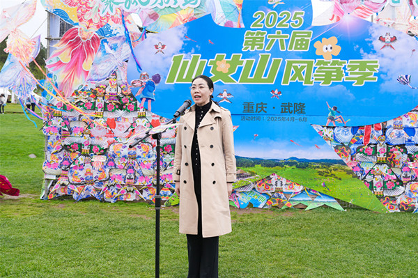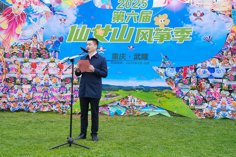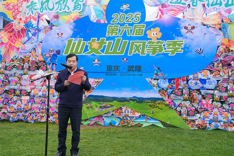 下午一点,开幕式正式开始。重庆武隆澳网官方网站产业(集团)总经理贺秋石,现场为游客们揭晓了今年仙女山风筝季精彩纷呈的活动内容。重庆市武隆区文化澳网官方网站委主任蔡斌致辞,他表示,本届仙女山风筝季将传统民俗与现代文旅深度融合,既有百米巨龙风筝的震撼亮相,也有国际风筝大师的匠心之作;既有传统纸鸢的技艺展演,也有亲子互动的趣味体验。真诚希望每一位朋友都能感受到“风筝逐云去,人在画中游”的诗意浪漫,更能在武隆的绿水青山间,驻足治愈心灵的栖息之地。