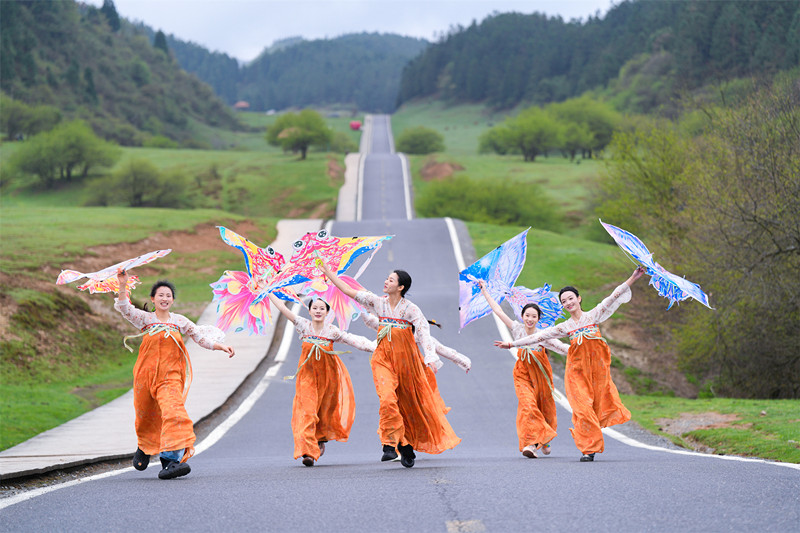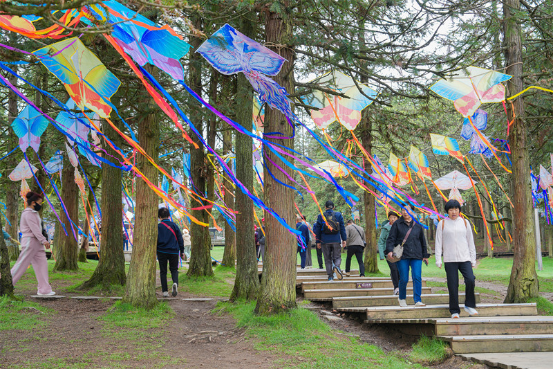 Z世代出片秘籍:大草原上“花簇燕子”打卡点被游客包围——巨型风筝墙、网红标语框,随手一拍就是大片,配文“在仙女山,我把春天放上天啦”,点赞破千预警!